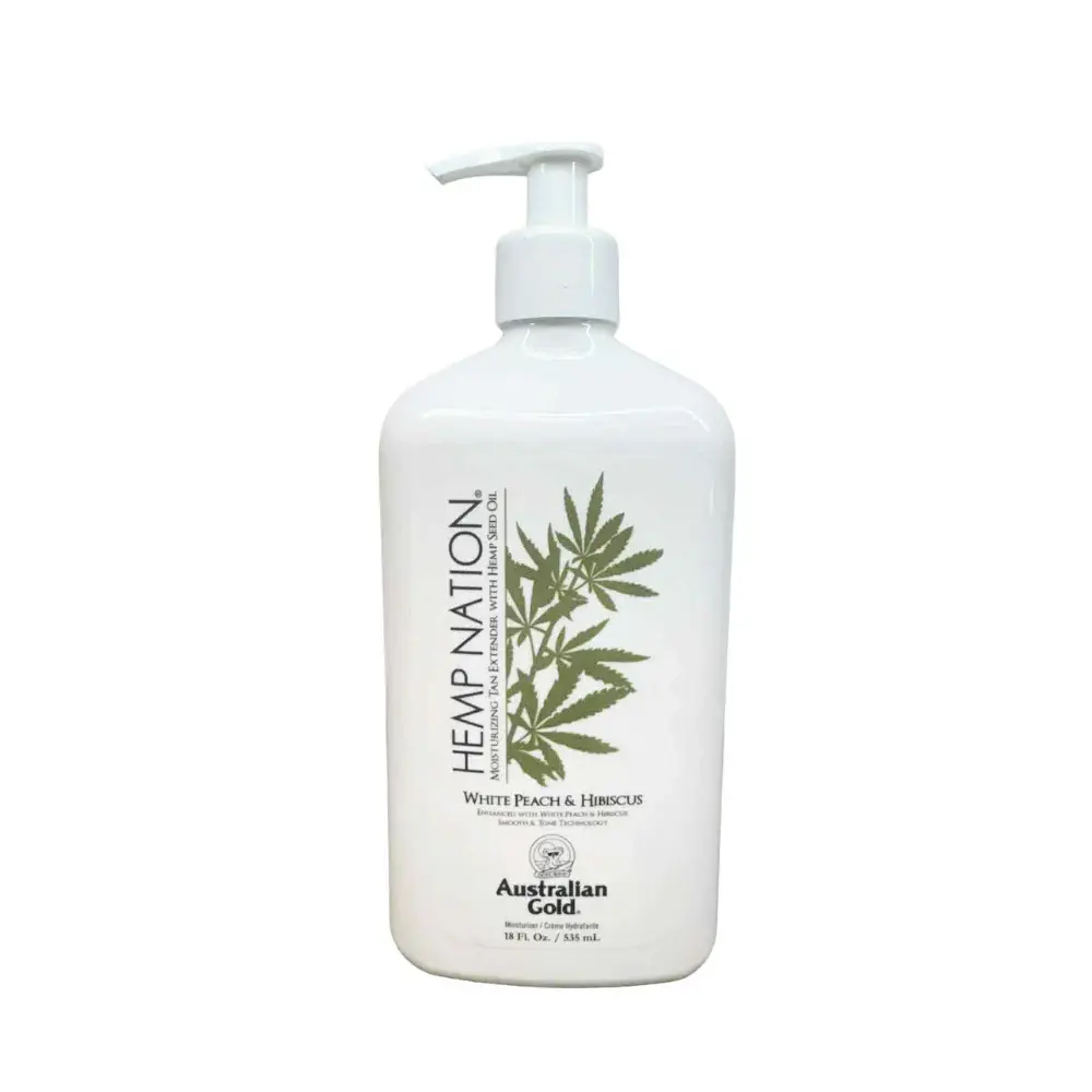 HEMP NATION bodylotion og aftersun med en duft af hvid fersken og hibiscus.